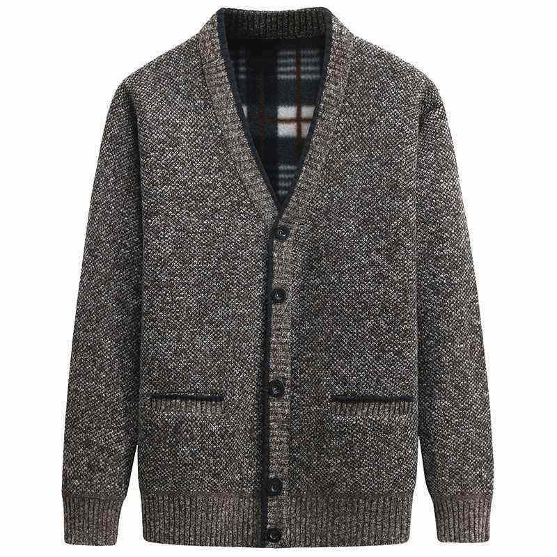 Men's New Autumn and winter thick warm cardigan jacket casual V neck button sweater big pockets men's cardigan sweater