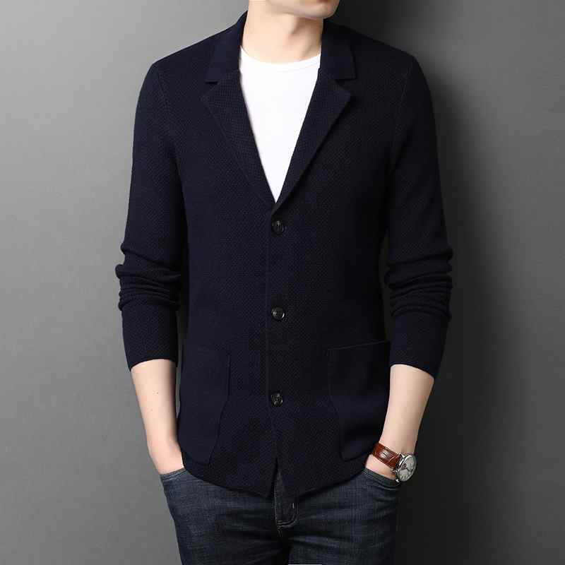Autumn New Men's Wool Knit Jacket Business Casual Single breasted Sweater Cardigan Jacket Male Brand Clothes