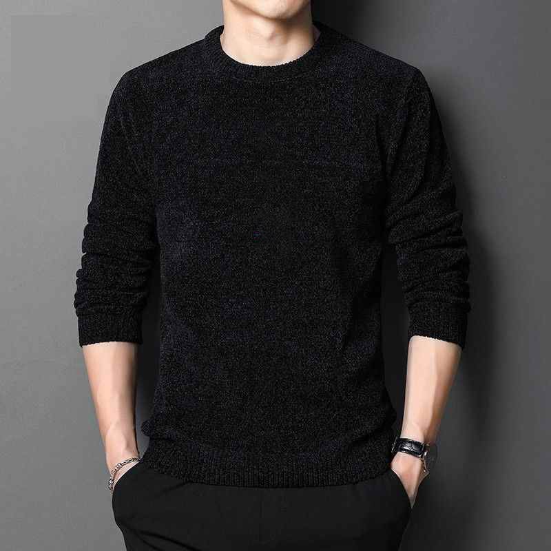 TOP Quality Autumn Winter Casual Man Fleece Sweater Pure Color Pullovers Men Clothing Fashion Warm Sweaters Slim Men's Top M 4XL
