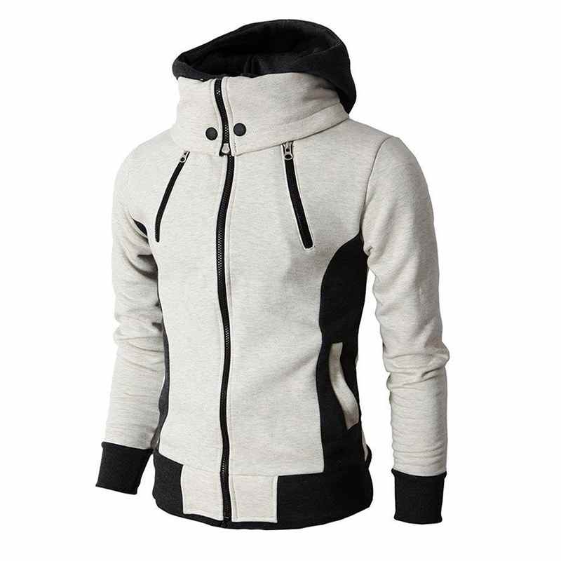 Zipper hooded sweatshirt men's fashion Spring/Fall casual quilted fleece warm hooded sweatshirt men's street top coat