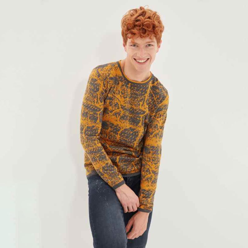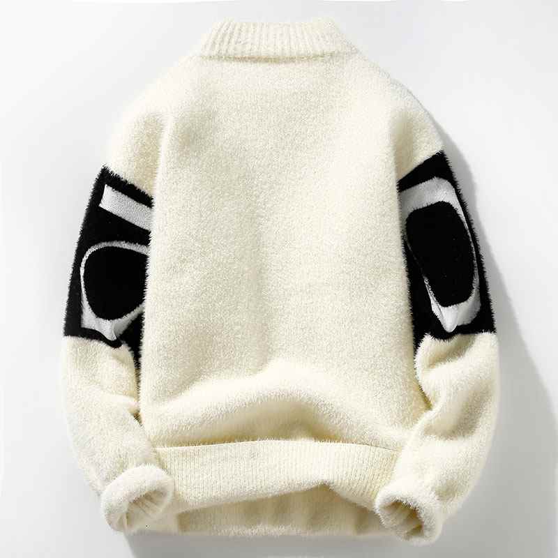 Male Slim Fit Bike Collar Sputtering Film Knitwear Sweater
